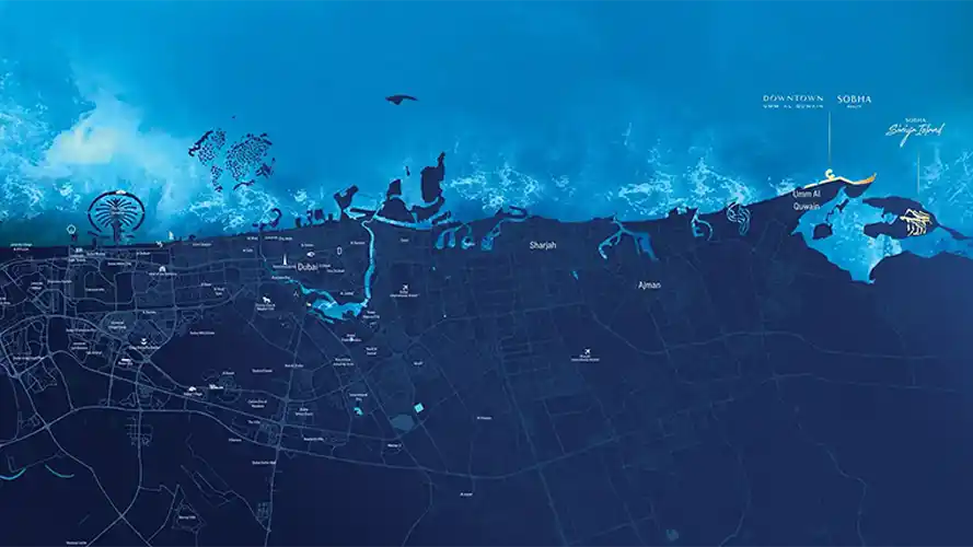 Sobha Aquamont, a large, high-above modern sanctuary, unveils its master plan, which blends modern conveniences with untouched beauty and exquisite architecture in a future setting. Downtown UAQ's wonderfully planned idea spans 25 million square feet of land, where this seaside metropolitan area builds communal hubs, maintains lush vegetation, and prioritizes happiness. The creators organized each region around the notion of mobility and importance, thus, it contains natural passages and walkways, as well as energy-filled seashore playgrounds and commerce areas.