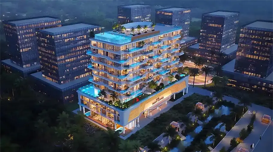 The Master Plan of Ventone Residences is pegged on the concept of a luxury waterfront lifestyle in a vibrant environment of Dubai Islands. The development rises eight storeys high to combine residential comfort with lifestyle facilities within a community-based setting. The podium levels are also secure in parking and share the facilities, and the landscaped spaces and recreational decks offer better outdoor living. The apartments are arranged in such a way that they are able to get maximum natural light and the beautiful waterfront views to provide a serene atmosphere. The master plan incorporates a blend of modernity and tranquillity of living on an island because of the direct access to the beaches, marinas, and retail destinations.